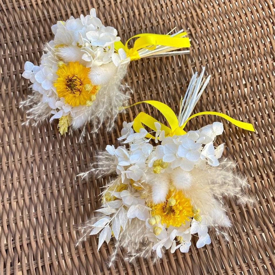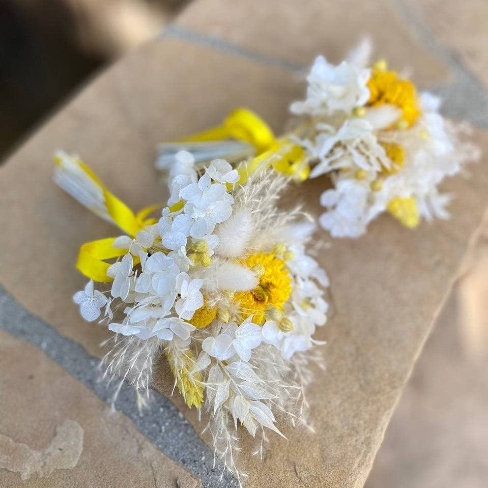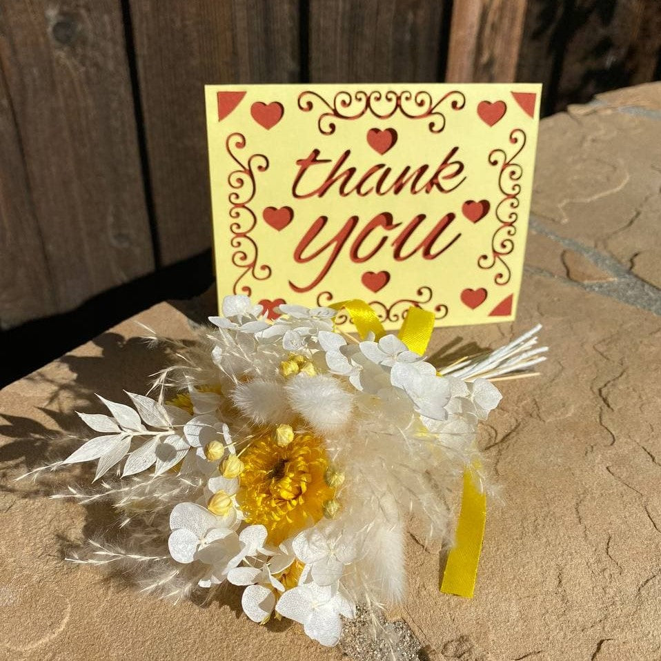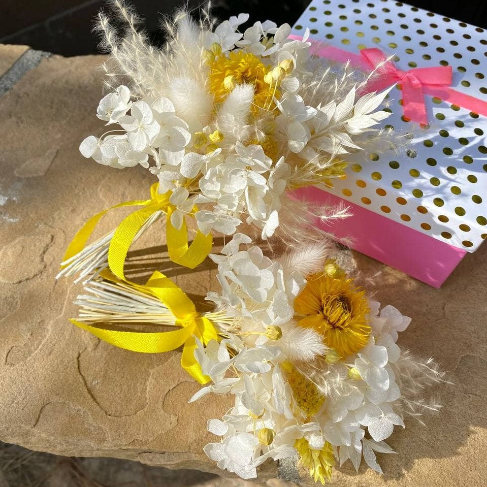 Handmade mini dried flower bouquet for gift, table setting, wedding and home decorations. Yellow & Neutral palette. Mini Dried Flower for Boutonniere.