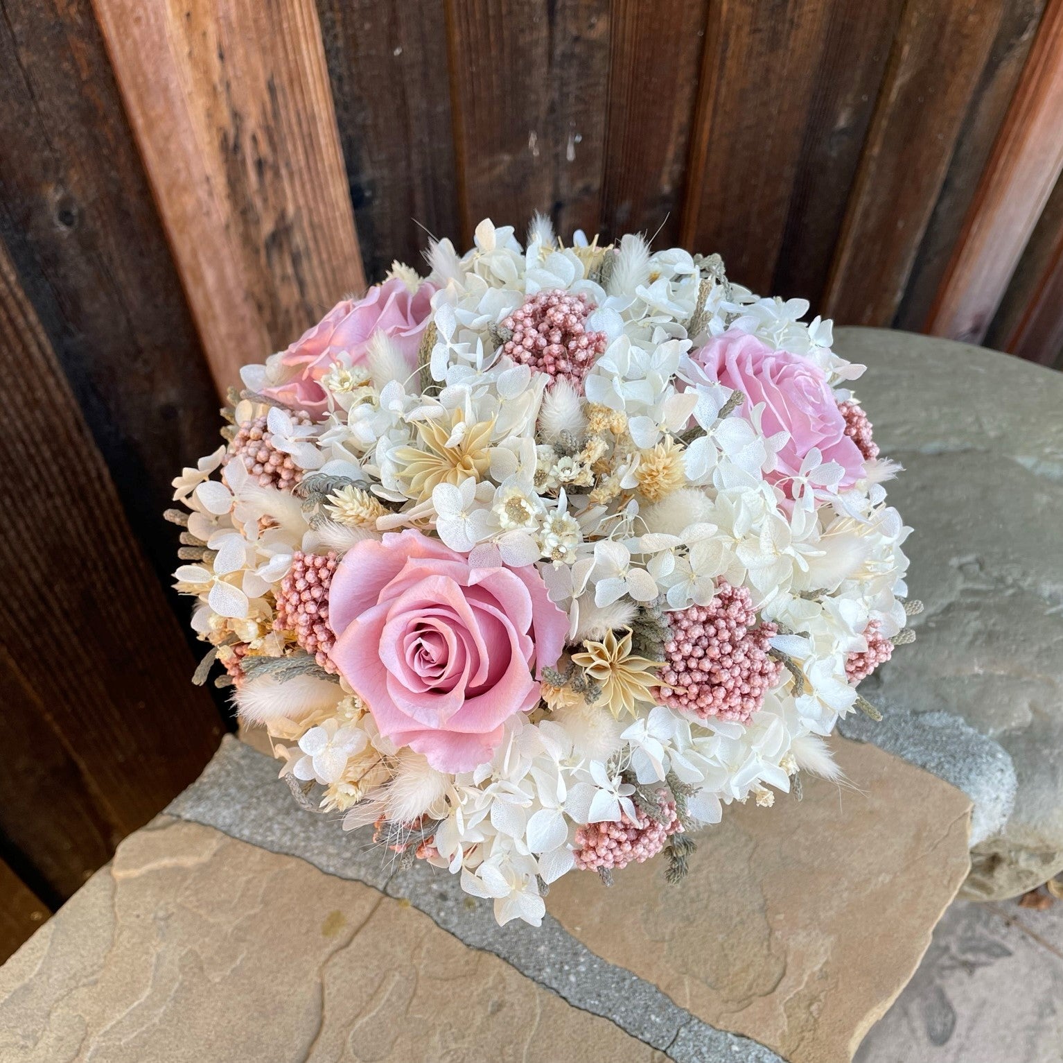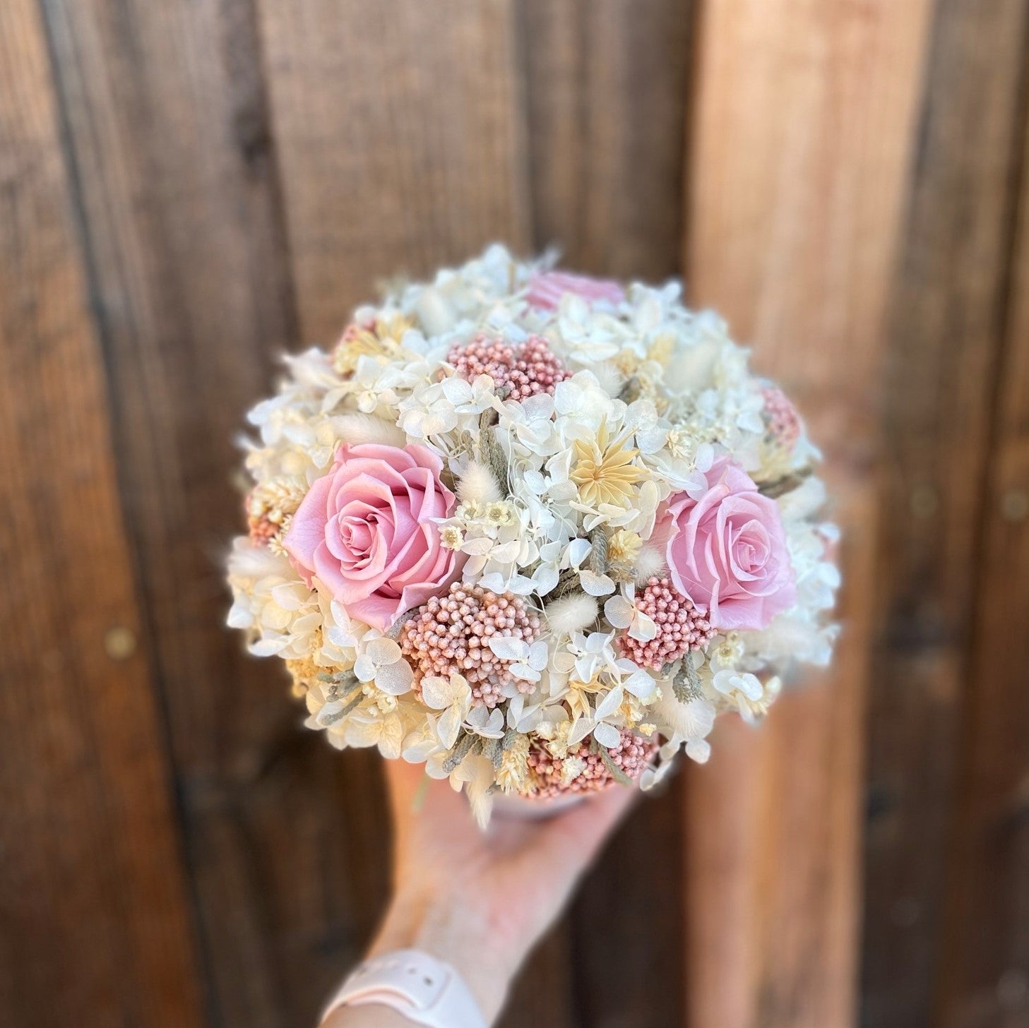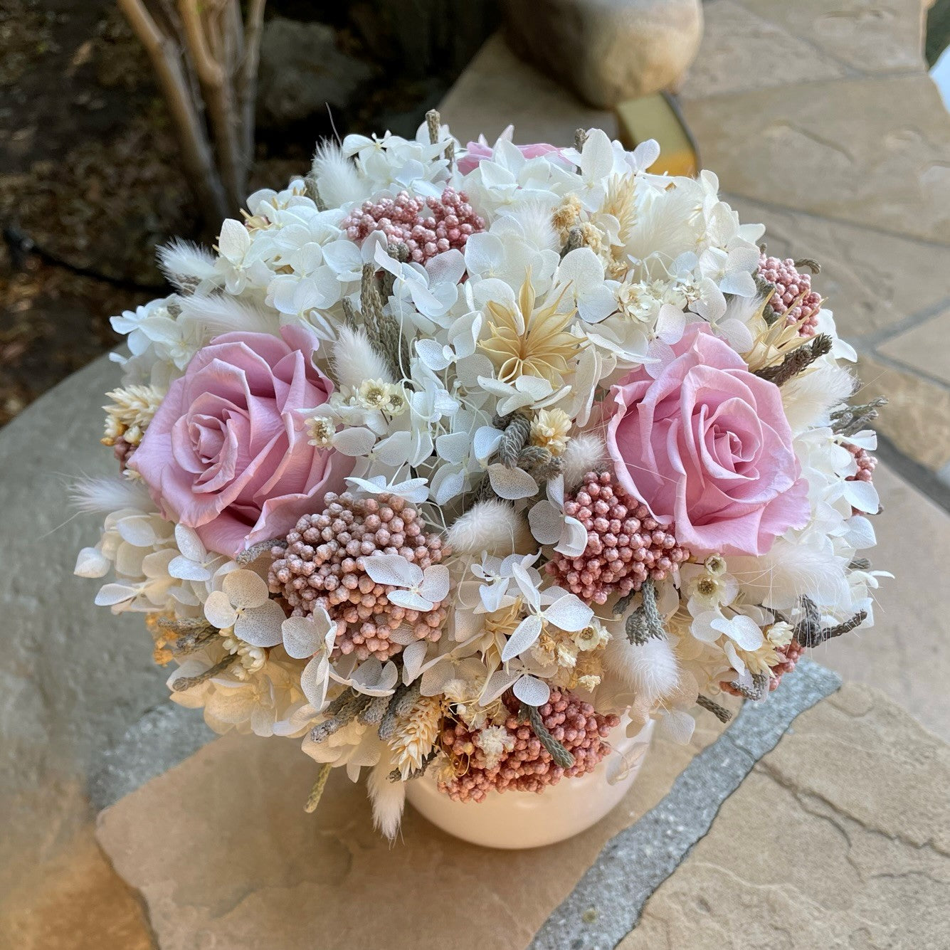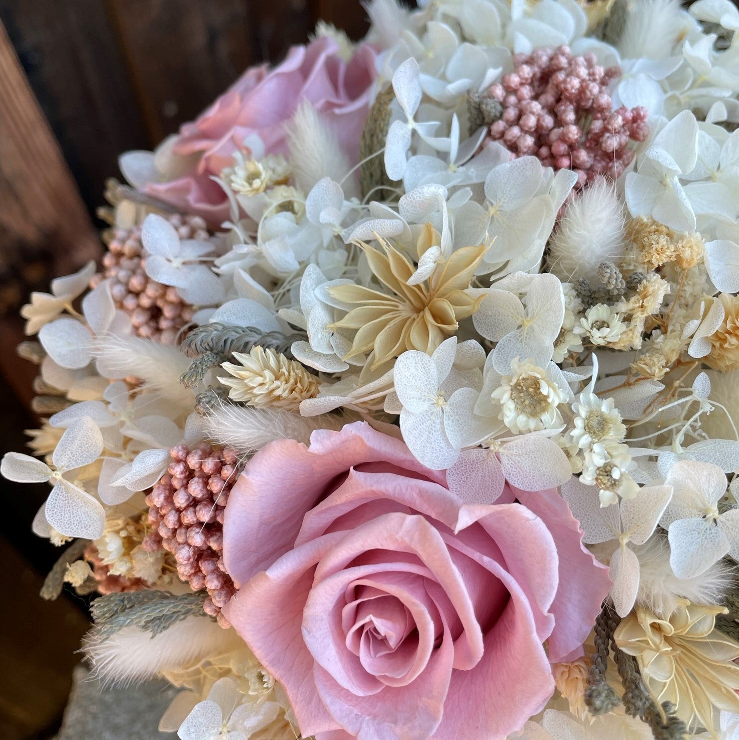Luxury Flower Arrangement with Preserved Roses and Dried flowers. Perfect Gift. Cute pink and white Birthday custom woman gift Everlasting Flowers.