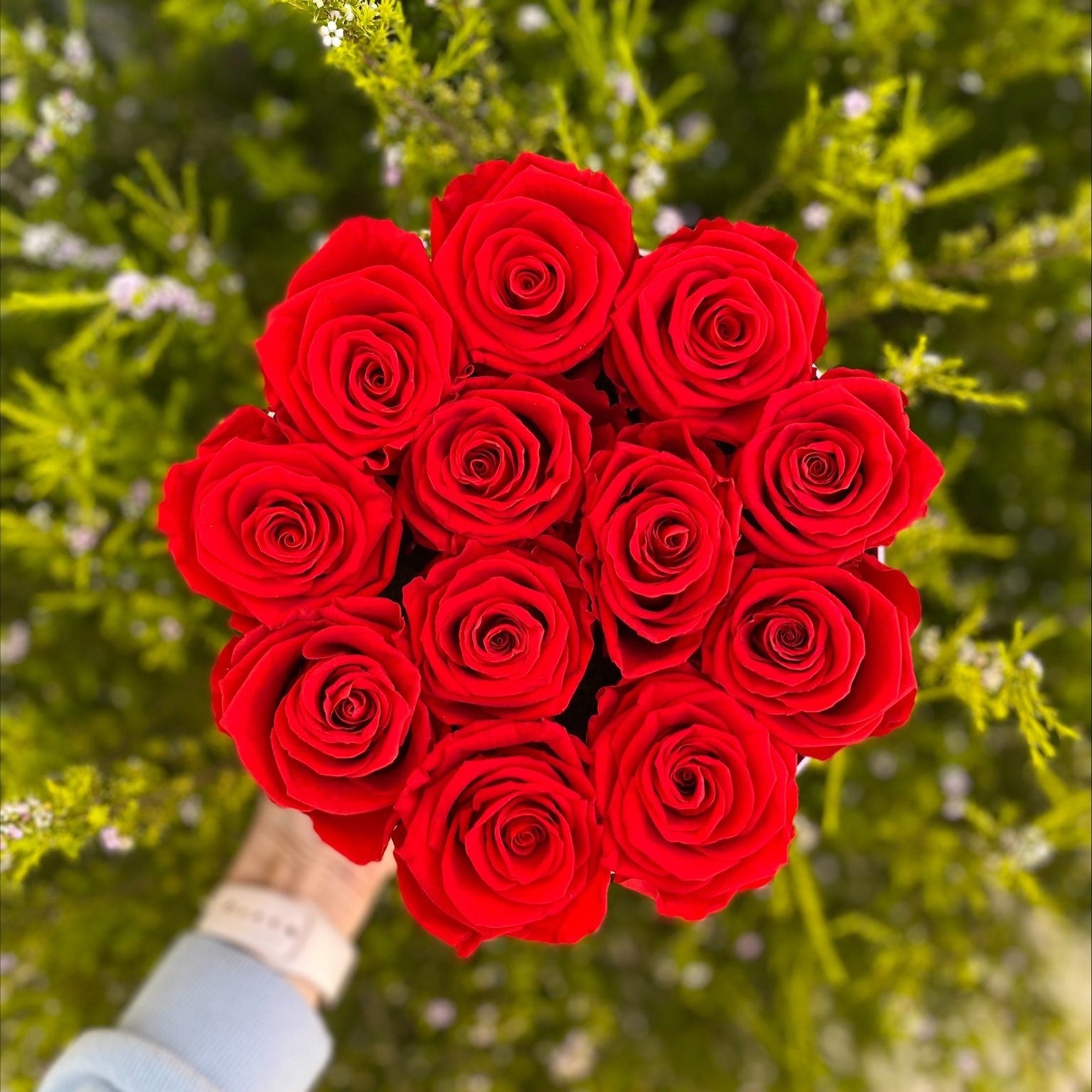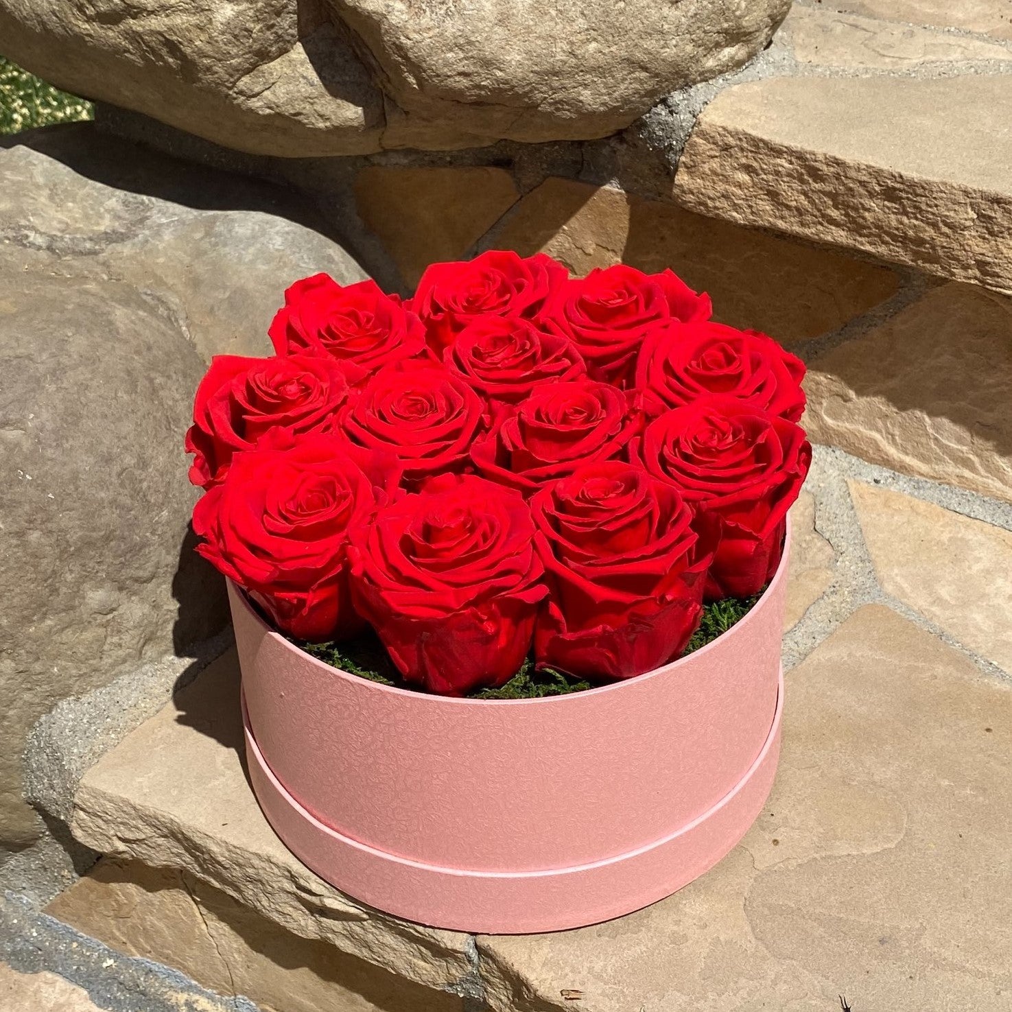 Luxury Flower Arrangement with Red Preserved Roses. Perfect Gift. Cute red Birthday custom woman gift Everlasting Flowers.