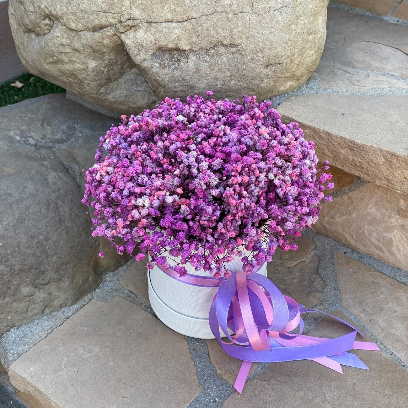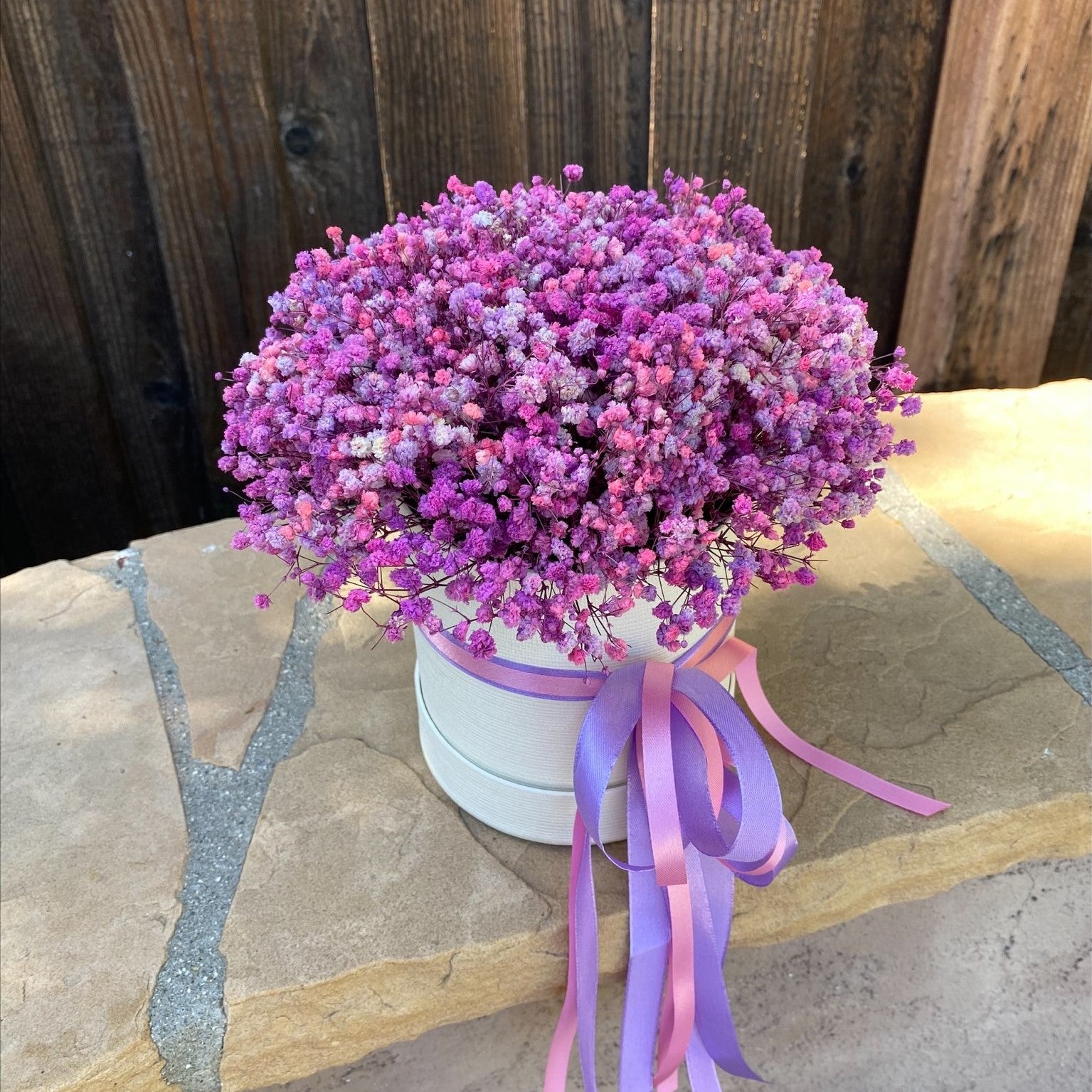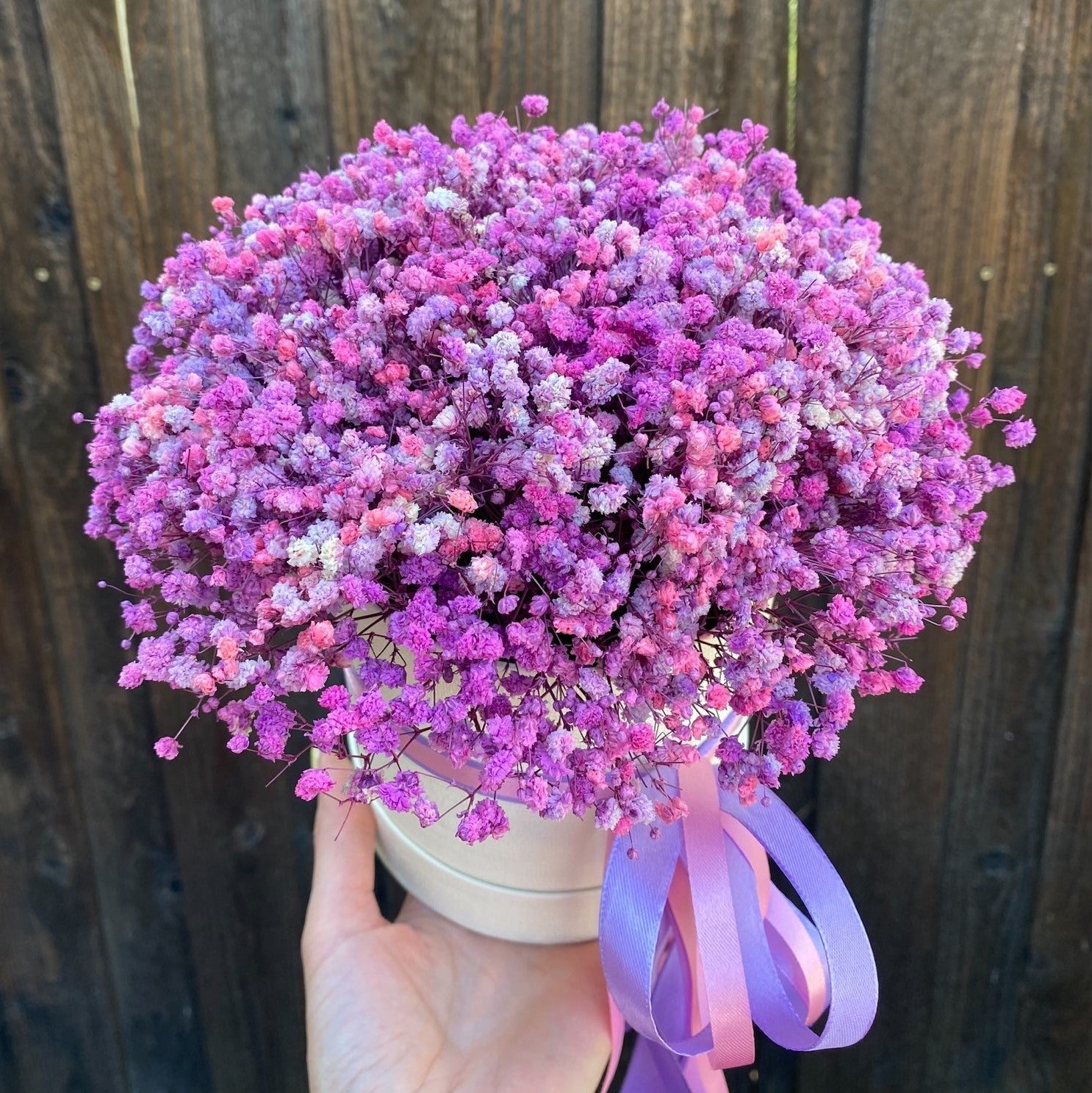 Baby's Breath Forever Flowers in a Round Box. Preserved Flowers. Perfect Gift. Cute purple and pink. Birthday custom gift Everlasting Flowers.
