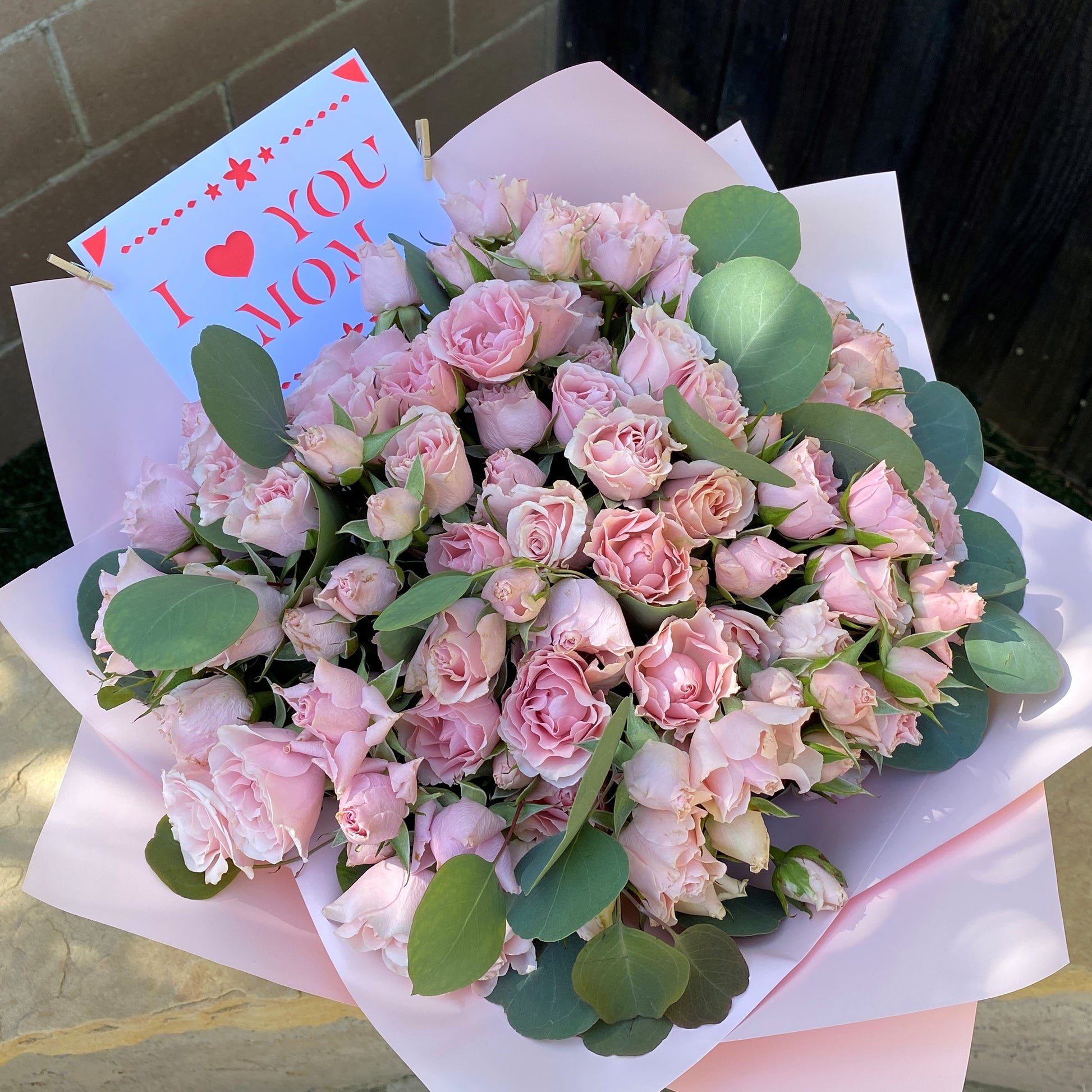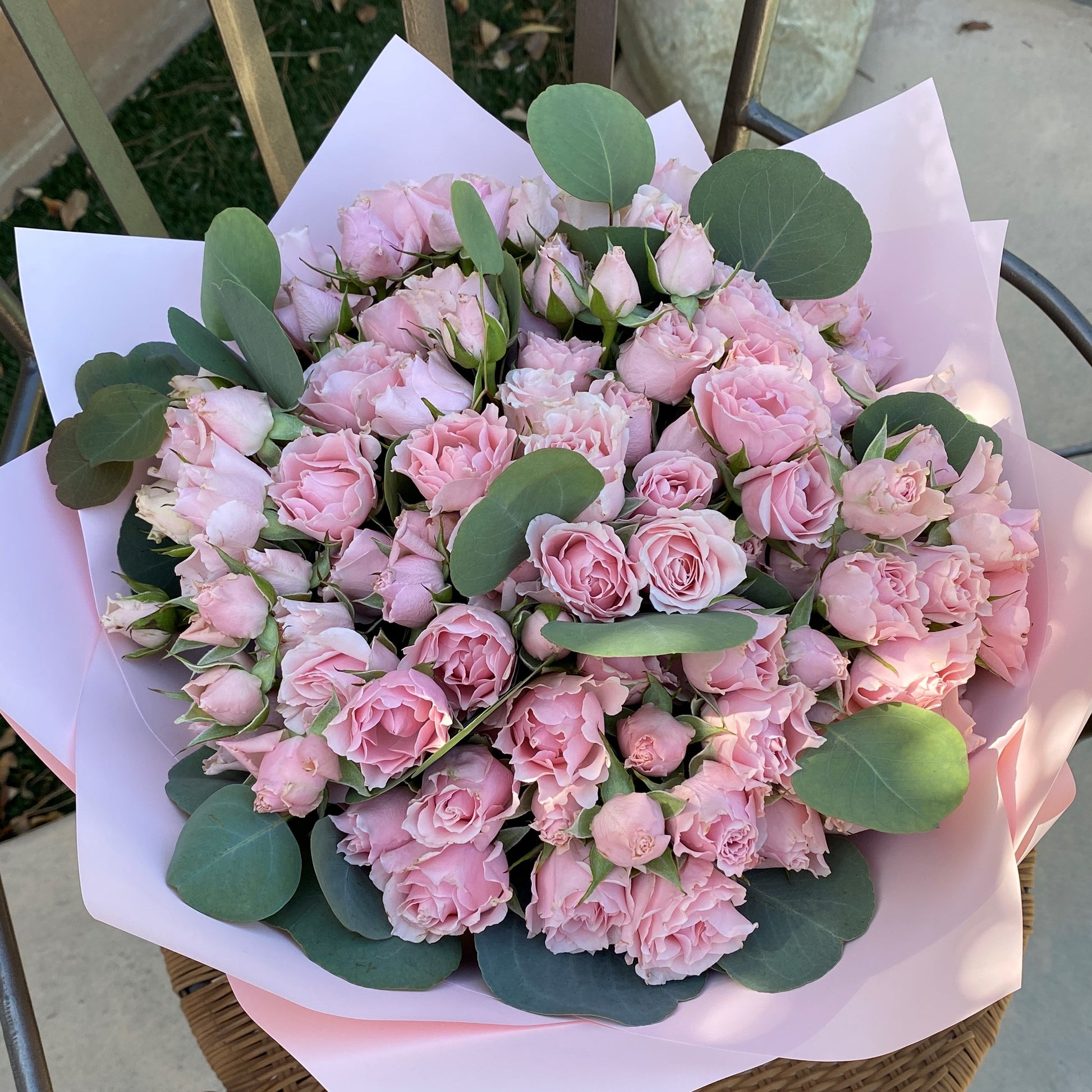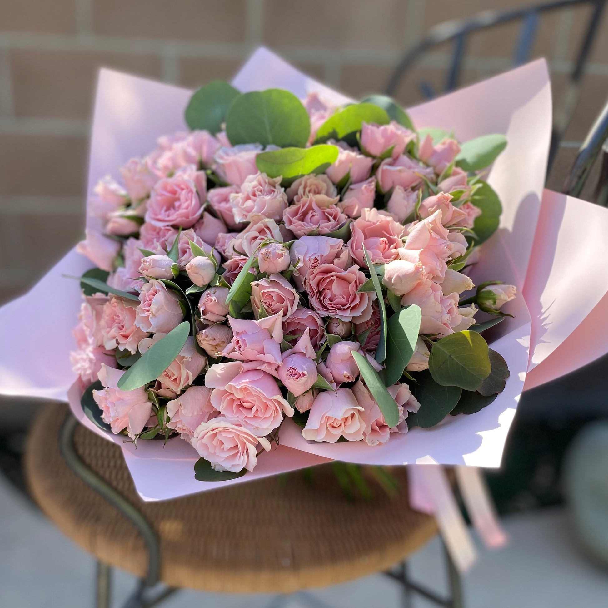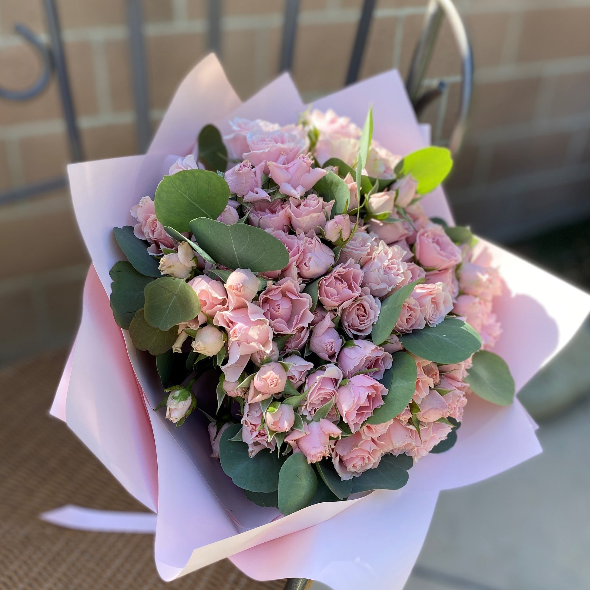 Send your warmest wishes to a dear people with this pink bouquet of spray roses and fresh seasonal foliage.