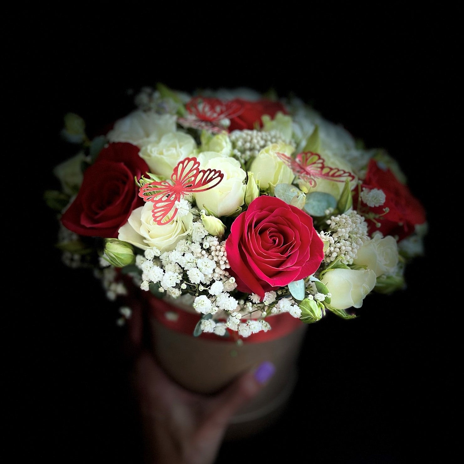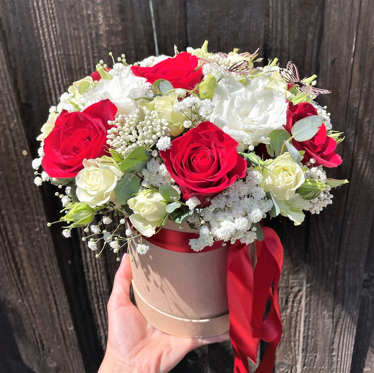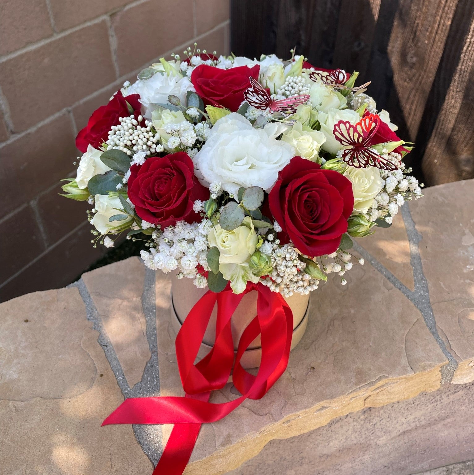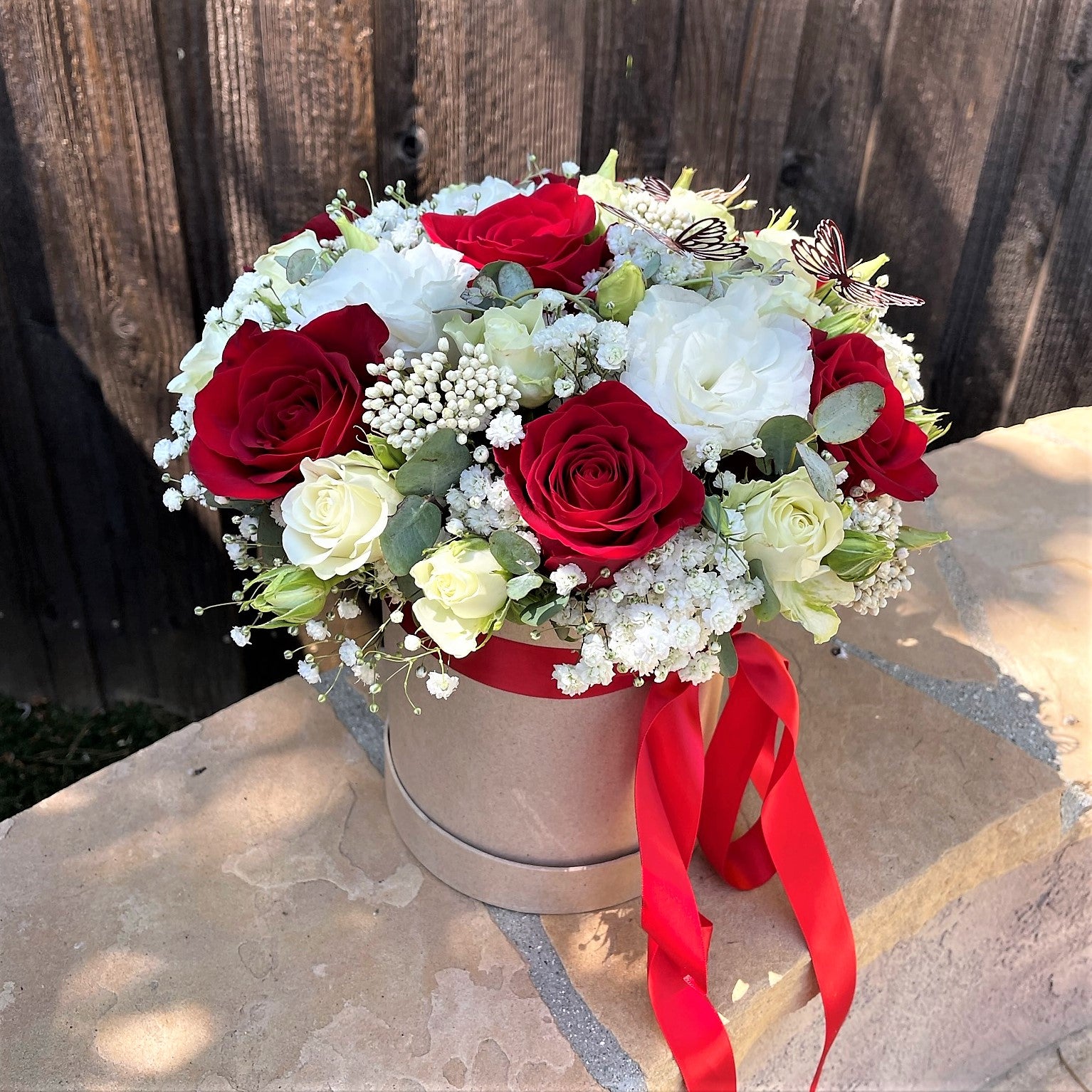 Box with Roses and Lisianthus
